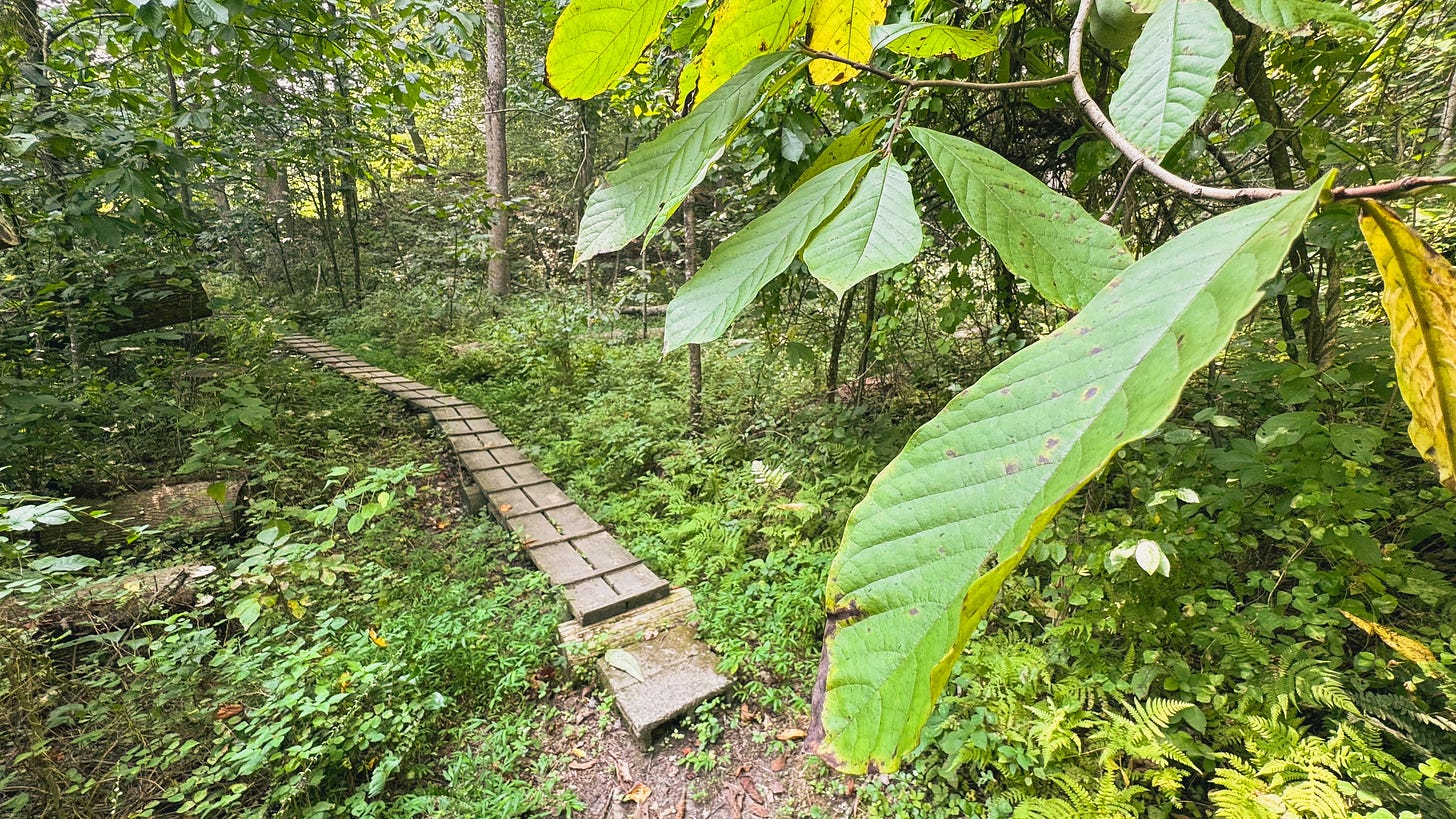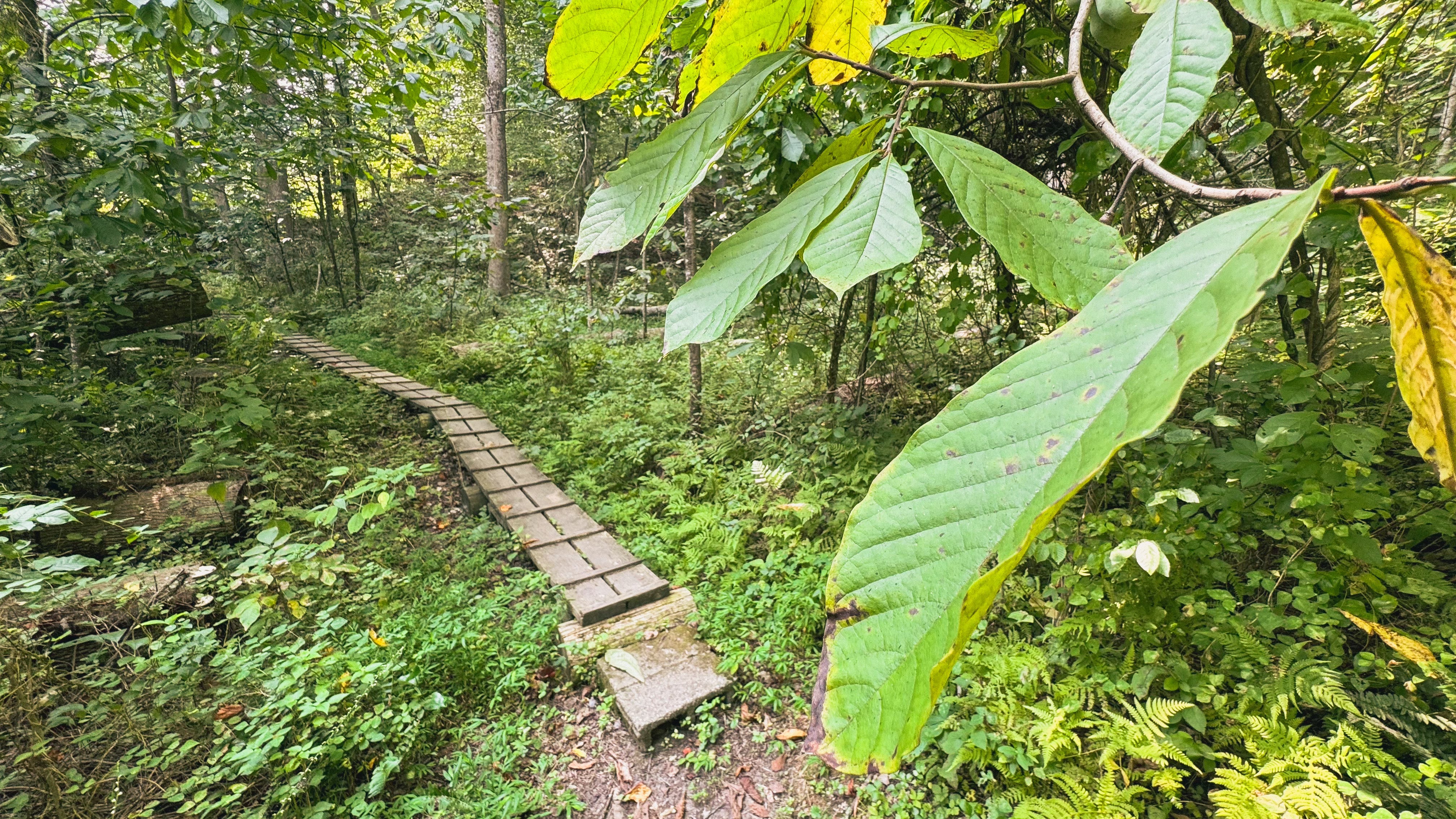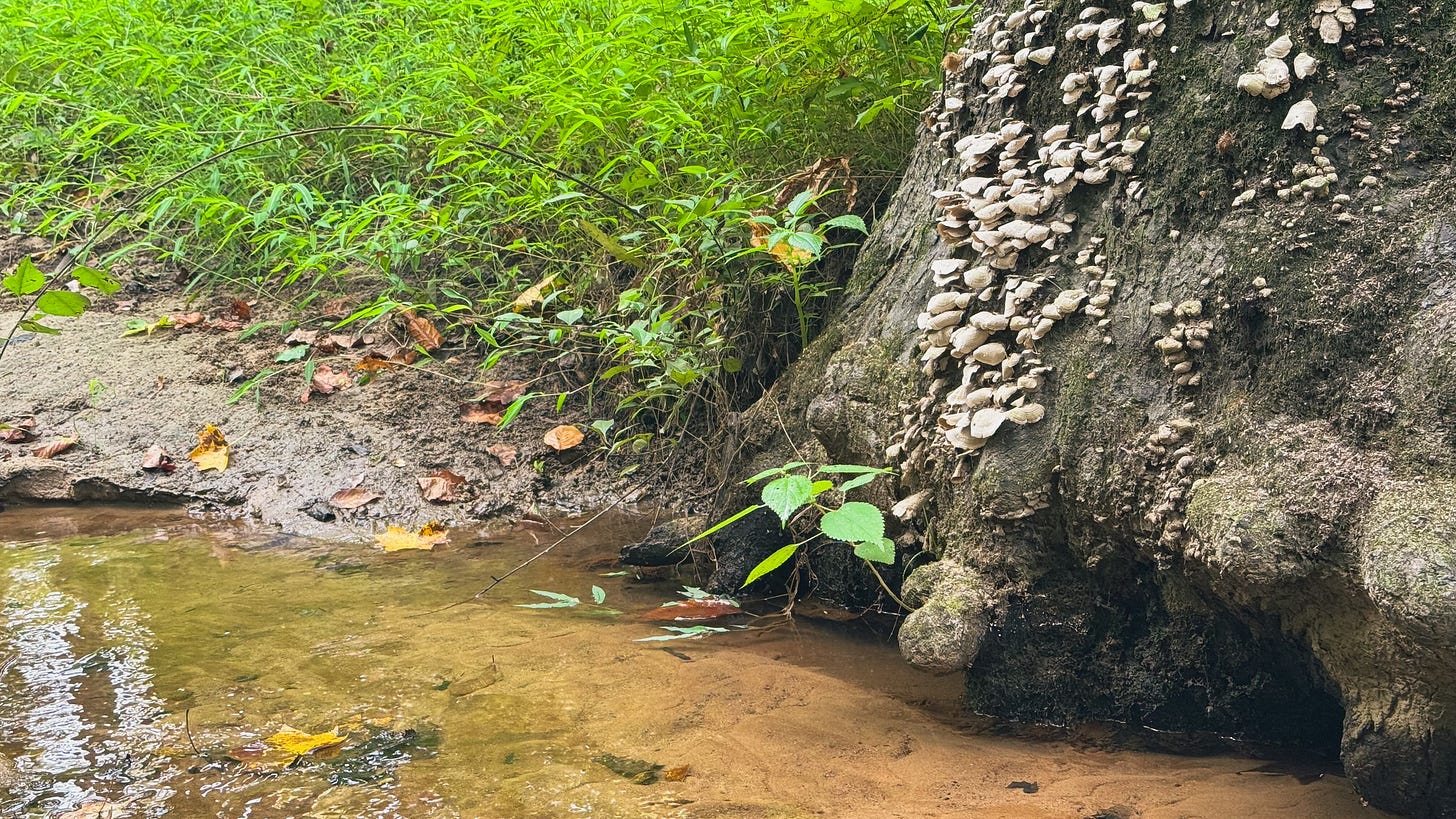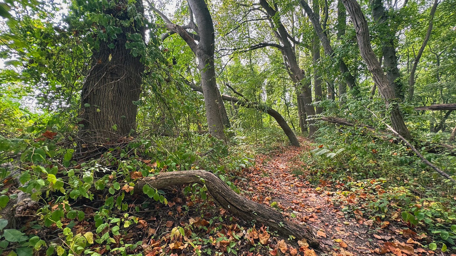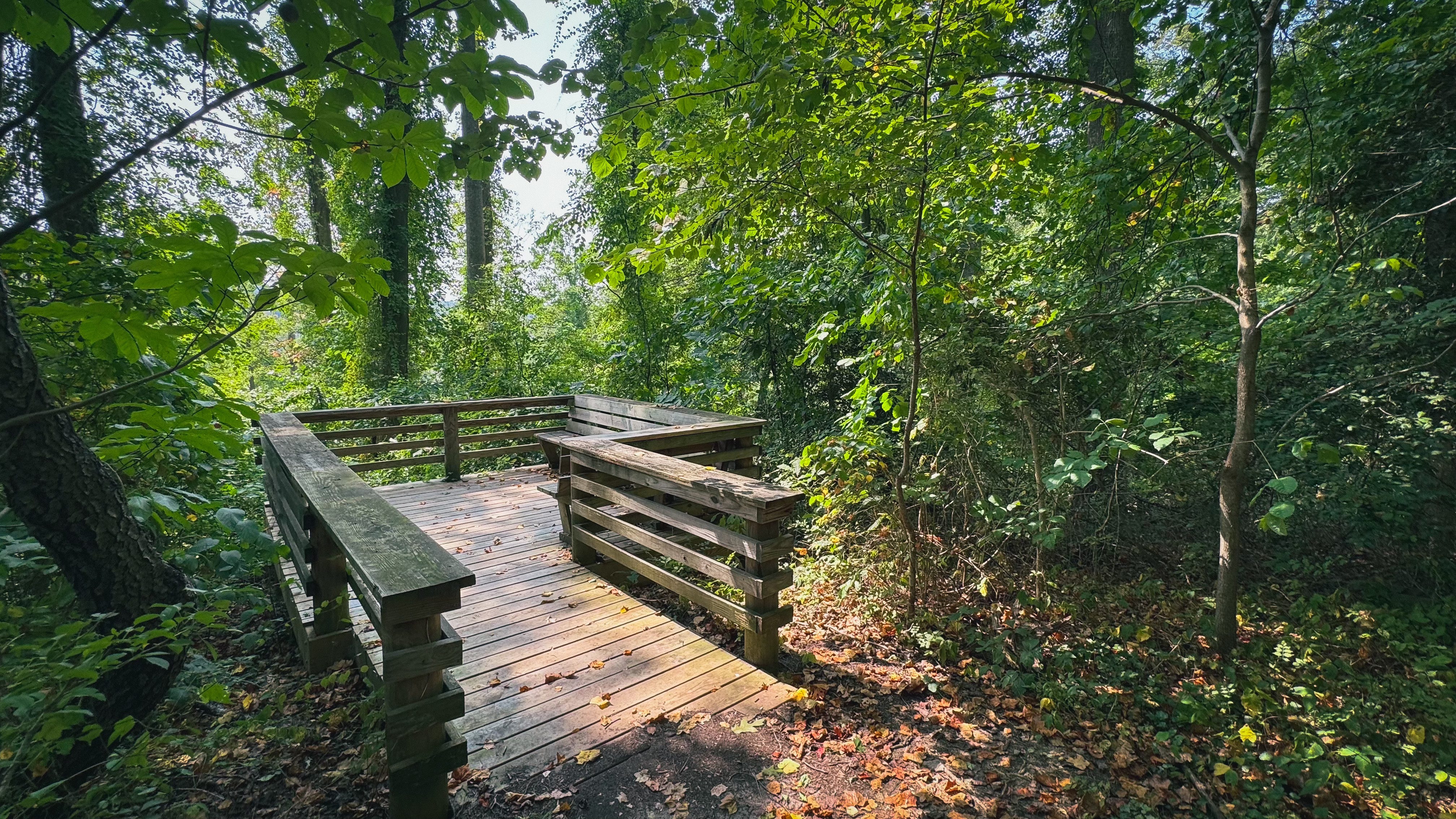 Anyway, here we are! Not a bad view, eh? It might be hard to see right now—there’s a lot more foliage with the invasive species blocking the view—but it gets better in the winter. You can see the water much more clearly once the weeds wither out. Let’s say we sit a spell before heading back.